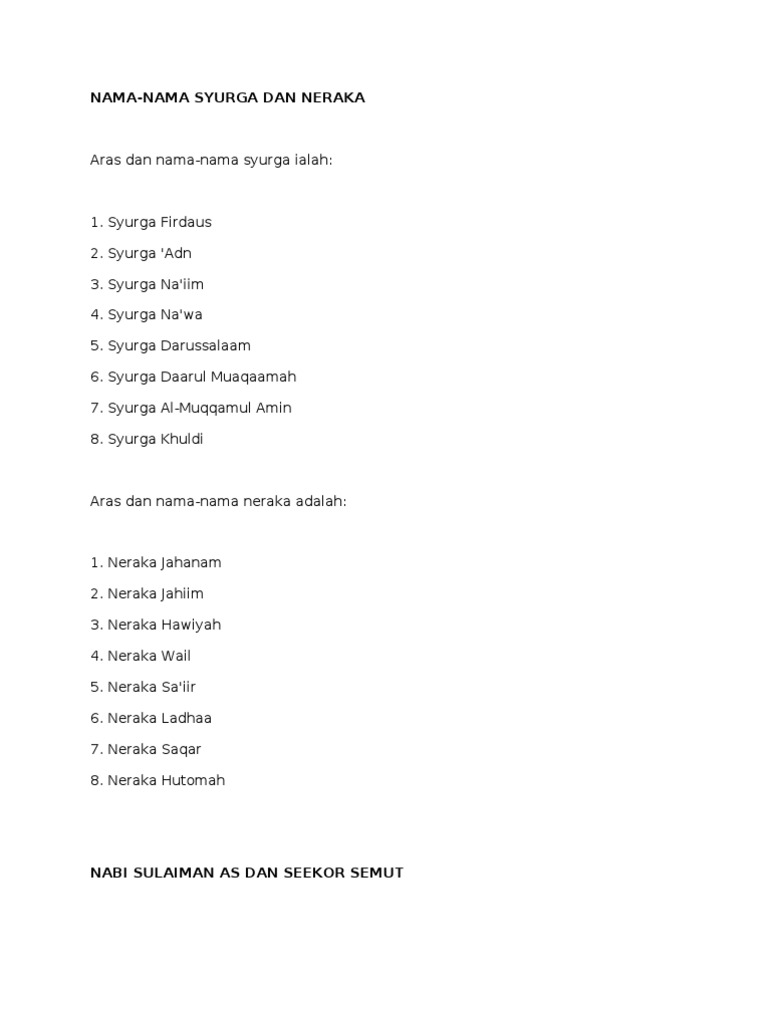 Tahukah Anda Nama Nama Syurga Sahabat Pencinta Al Quran Facebook